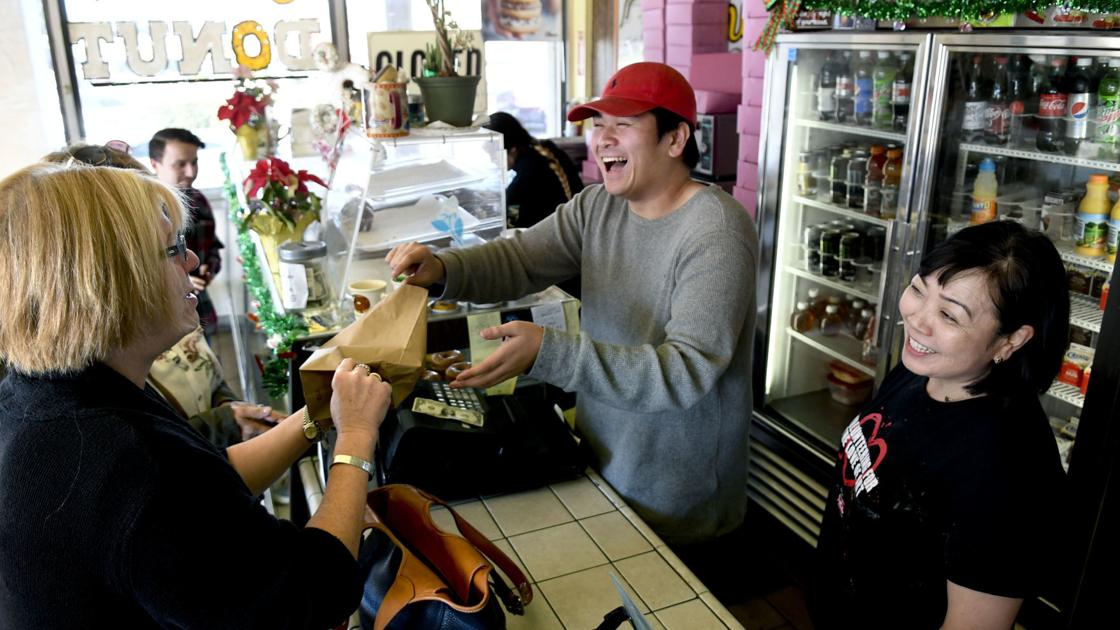 When Houth Hak and husband Sen Lay opened the Golden Donut in Orcutt at 5 a.m. Friday after four days off for the New Year's holiday, a crowd of customers waiting outside flowed through the doors to buy coffee, doughnuts, cinnamon rolls and apple fritters.