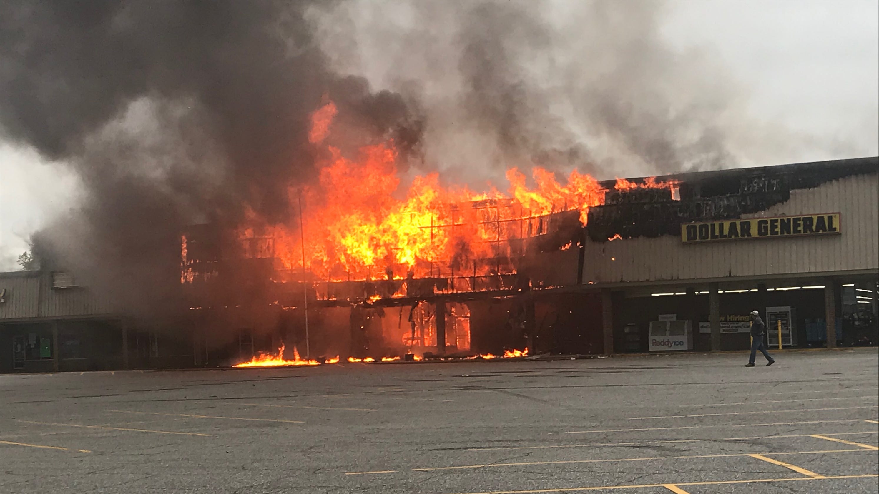 The fire started just before 8:30 a.m. at the Marketplace Shopping Center where it appeared to have reached a beauty salon, a small post office annex and a portion of a Dollar General store. The strip mall also contains Ollie's Bargain Outlet, one of the complex's largest anchor stores.