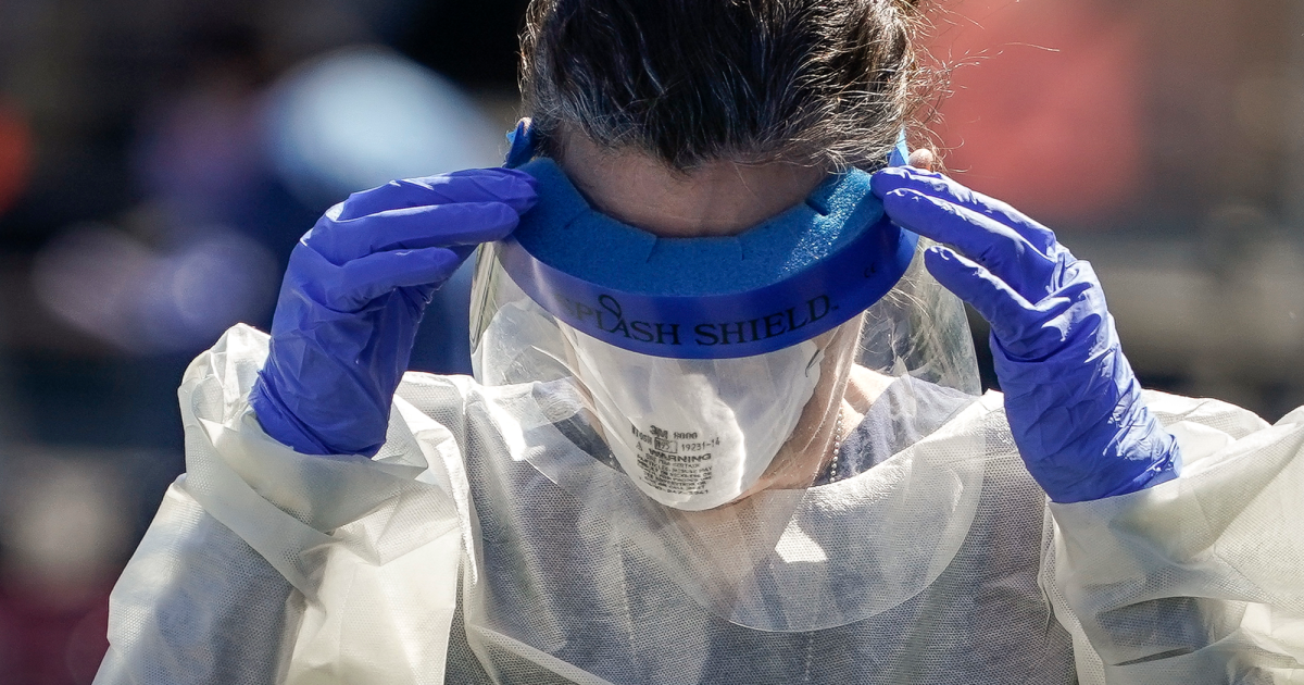 A medical worker at a coronavirus drive-thru testing site in Washington, D.C., on April 2. Drew Angerer/Getty