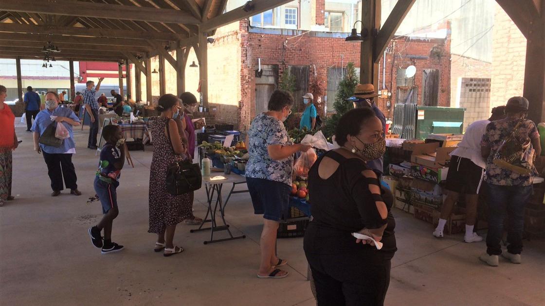 Customers gather, socialize and shop at the Downtown Orangeburg Farmers Market. The market is celebrating its first year at its new location at the Downtown Market Pavilion at 1326 Russell St.