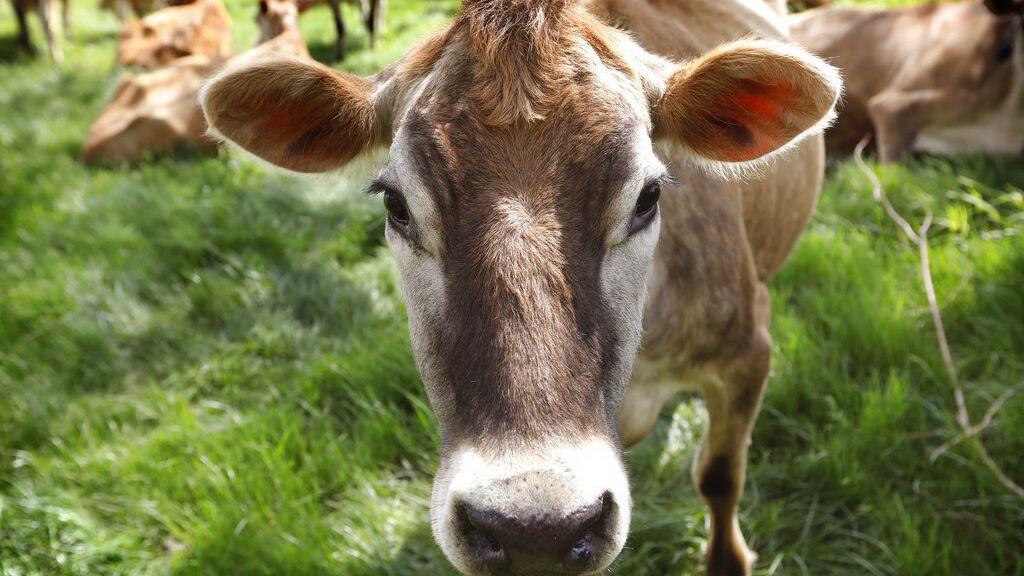 A Jersey cow feeds in a field on an organic dairy farm in Fairfield, Iowa. Burger King is announcing its work to help address a core industry challenge: the environmental impact of beef. To help tackle this environmental issue, the Burger King brand partnered with top scientists to develop and test a new diet for cows, which according to initial study results, on average reduces up to 33% of cows' daily methane emissions.
