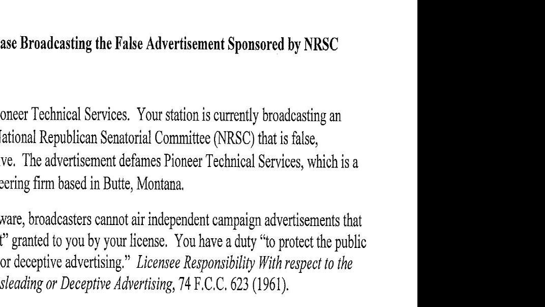 The National Republican Senatorial Committee started airing an ad last week that references $14 million in state grants to a Butte firm, Pioneer Technical Services. Pioneer is not named in the ad, but is referenced through its association with Gov. Steve Bullock's brother, Bill. NRSC released another ad on the same topic Friday.