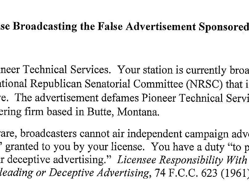 The National Republican Senatorial Committee started airing an ad last week that references $14 million in state grants to a Butte firm, Pioneer Technical Services. Pioneer is not named in the ad, but is referenced through its association with Gov. Steve Bullock's brother, Bill. NRSC released another ad on the same topic Friday.