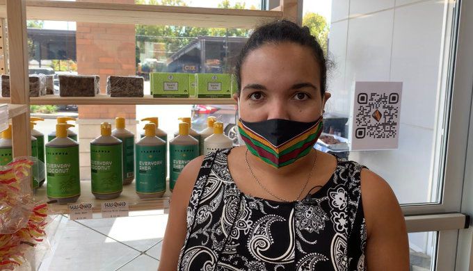 While she stocks the shelves inside, her husband is outside preparing jerk chicken. With the strong, flavorful scents of Jamaica emanating through the air, she is proud to provide a platform for the community to sell their products.