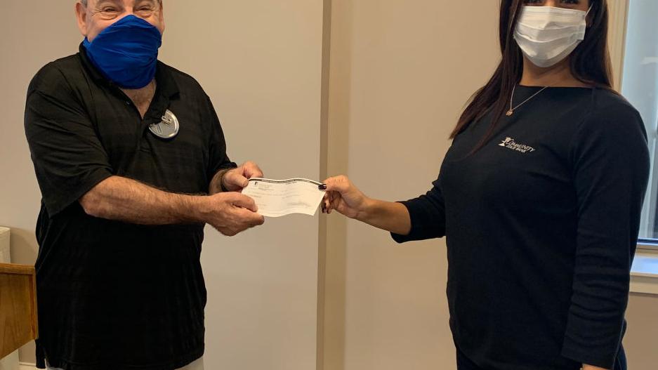 (From left) Rotary Club of Burlington President Ronald Kolman and Community State Bank Burlington Business Banker Becky McClelland.