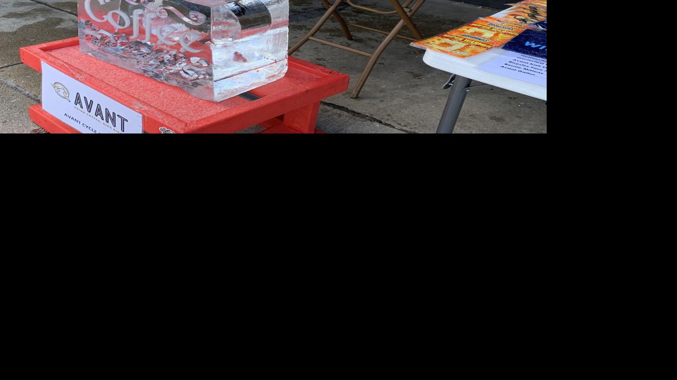 Avant Cycle Cafe featured an ice sculpture depicting a mug of coffee or hot beverage outside of its storefront as part of the Downtown Ice Sculpture Walk, which was part of the Winterfest activities. Avant sold Winterfest memorabilia and snack items outside of its business.