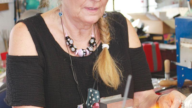 Heartsong Beads owner Susan Hanson works on a memorial bead in her Seal Rock studio. Hanson is closing her brick-and-mortar store after 21 years and moving her business online. (Photos by Susan Schuytema)