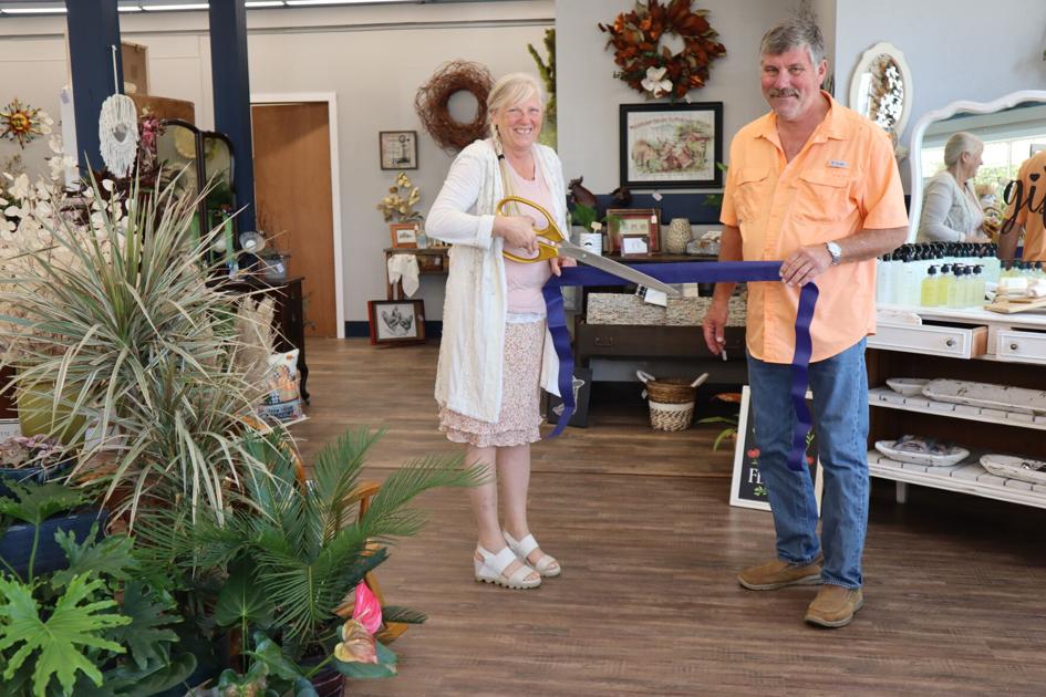 Leilani and Jim Martin pose for a ribbon cutting ceremony during the grand opening of Riverside Floral on Oct. 1.