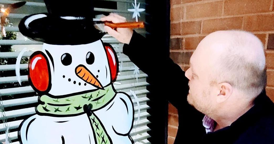 The big, bright, whimsical Christmas scenes on downtown Sylacauga storefront windows are the work of local artist Kevin Whitman, long-time owner of Whitman Gallery + Studio and full-time marketing director for Heritage South Credit Union on Broadway Avenue.