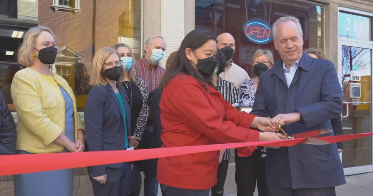 City leaders helped Kathy Aphaivongs-Harrod cut the ribbon on her restaurant, All Thai'd Up, in downtown Louisville on Tuesday, March 1, 2022. (WDRB photo)