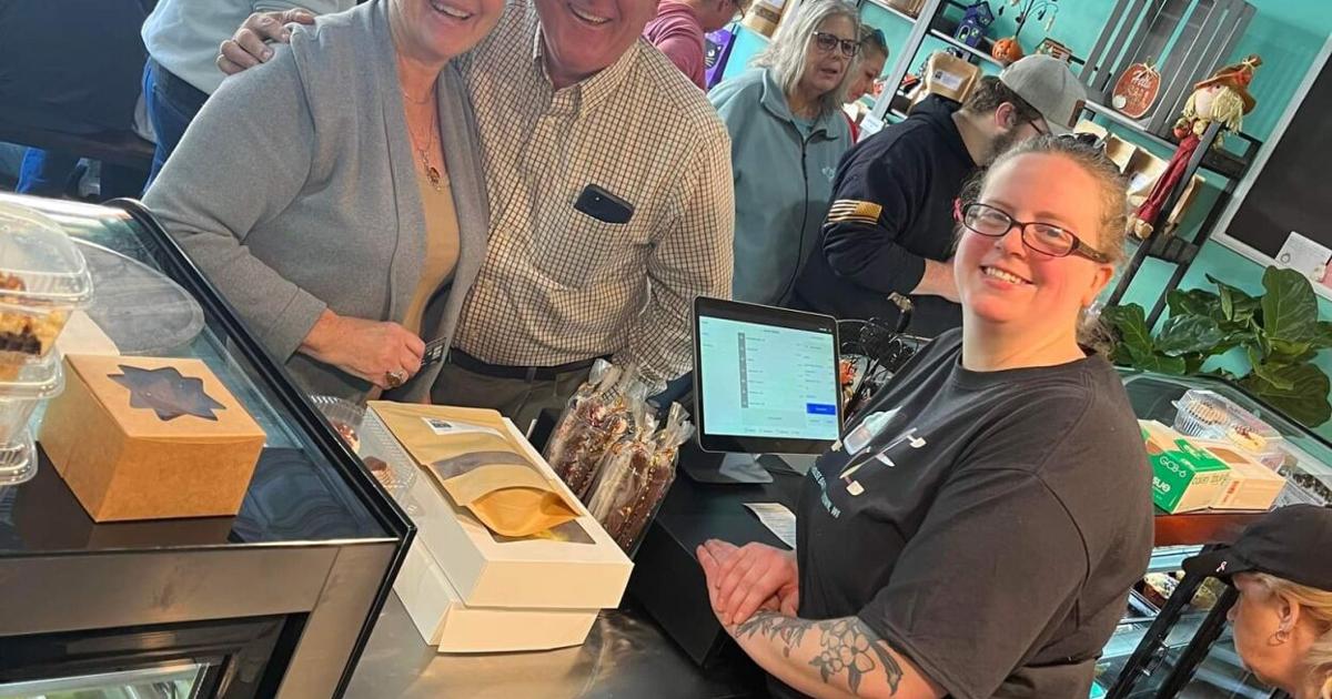 April Chandler, owner and baker, serves customers Cindy and Steve Pressly at the Chandler House Bakery grand opening Oct. 29