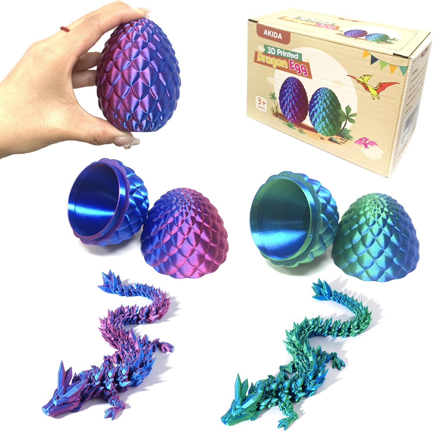 #5, AKIDA 2 Packs Dragon Eggs with Dragon Inside, Dragon Egg Fidget Toy, 3D Dragon Eggs with Dragon Inside, Mystery Dragon Egg, 3D Printed Dragon Egg, Stocking Easter Basket Stuffers (Purple and Blue) 4.5 out of 5 stars, 44, $12.99
