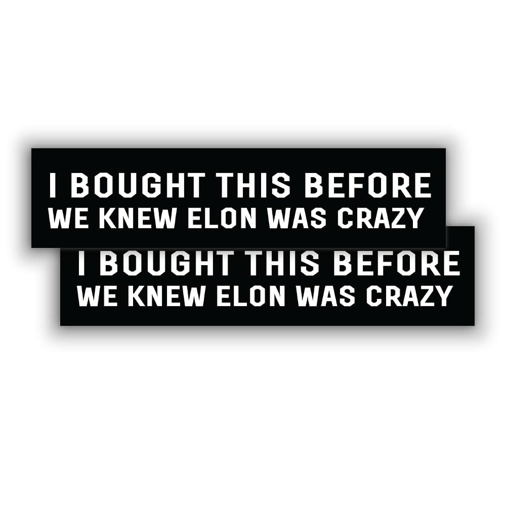 2pcs Anti Musk Tesla Bumper Sticker, I Bought This Before We Knew Elon Was Crazy, Elon Sticker, Anti Elon Sticker, Tesla Bump — $7.49TLDR Check here.