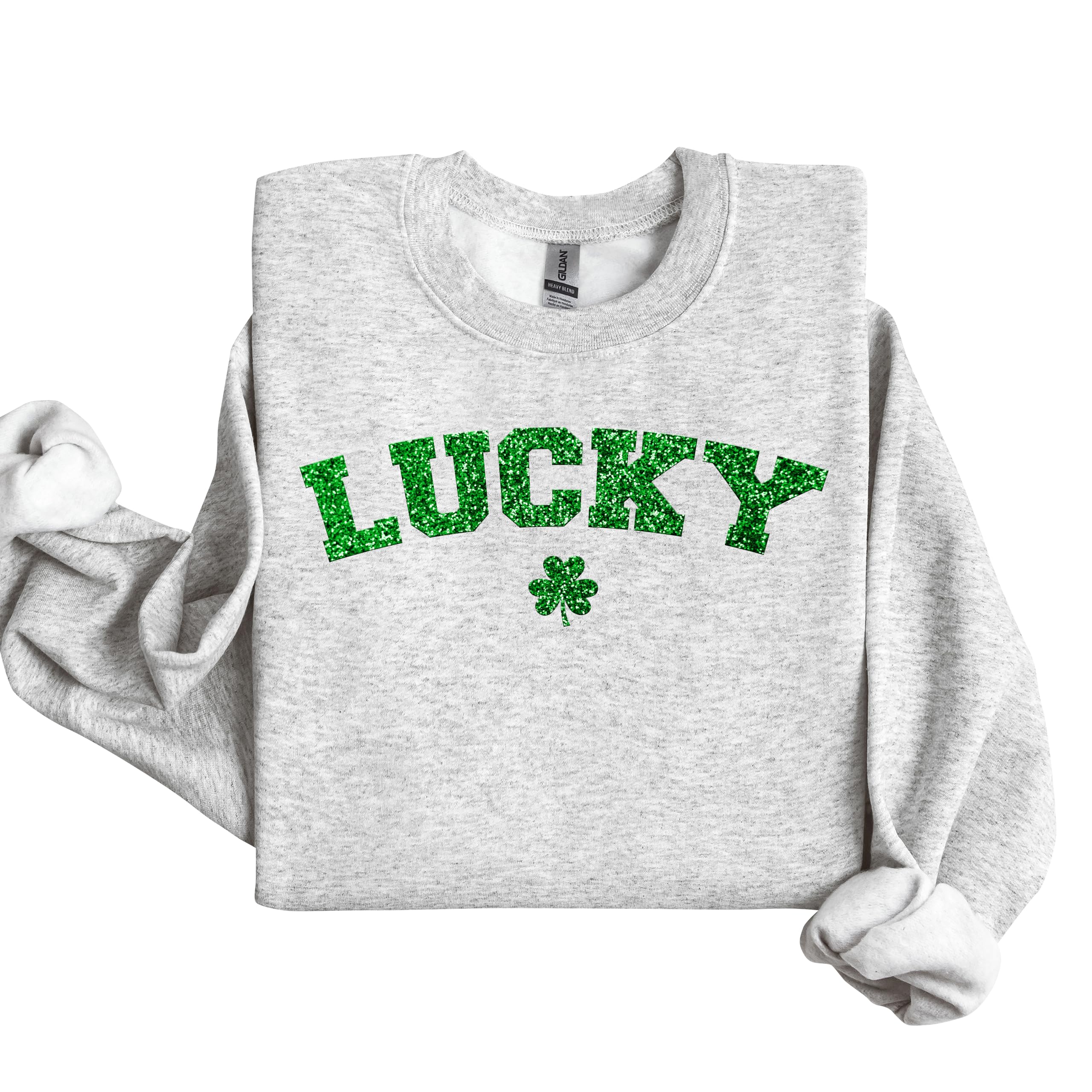 St Patrick's Day Shamrock Crewneck Sweatshirt, Green, DTF Print (L, Lucky 4).