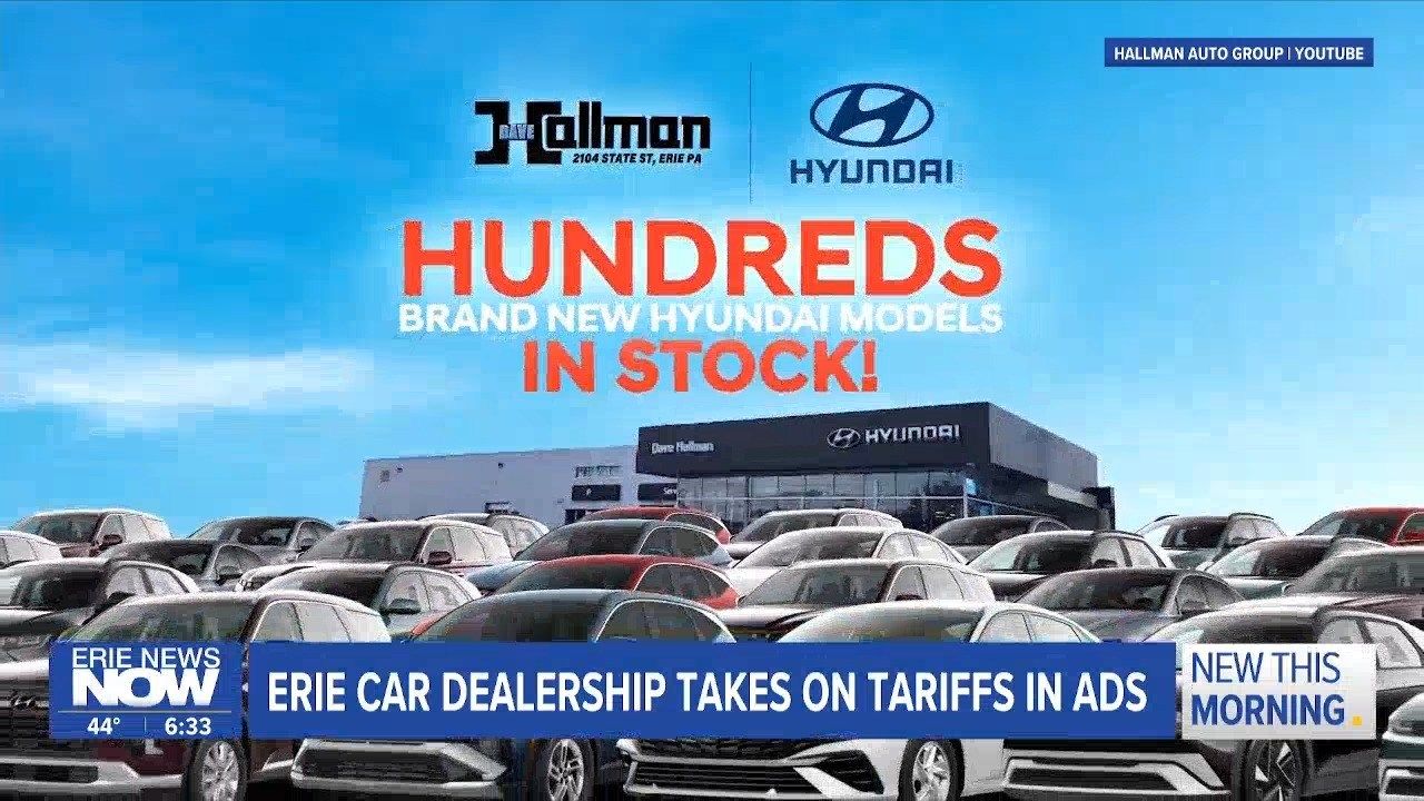 ⁘Prices are going up everywhere. Well⁘almost everywhere,⁘ one said. ⁘No tariffs mean you save thousands,⁘ it continues.⁘ ⁘All of our vehicles here on the ground at Dave Hallman Hyundai are completely unaffected by all of the tariffs because they arrived here in the U.S. before they took effect,⁘ said sales manager Benjamin Jefferys.⁘• • • •